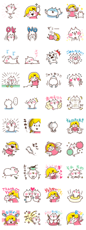 猫や鳥の小動物&女の子の、のほほん系スタンプ。イラストレーター・漫画家【カナヘイ】スタンプ第1弾。カナヘイ より発売