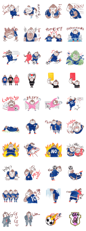 だらだらゴリラのサッカーバージョンです。もうすぐ始まるワールドカップを盛り上げるスタンプにしました。よっしゃー!!soku より発売