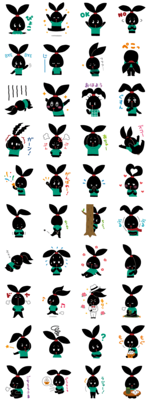 十五夜に月からやってきた、迷子のうさぎ「ぴょこ」のスタンプです。みふねたかし より発売