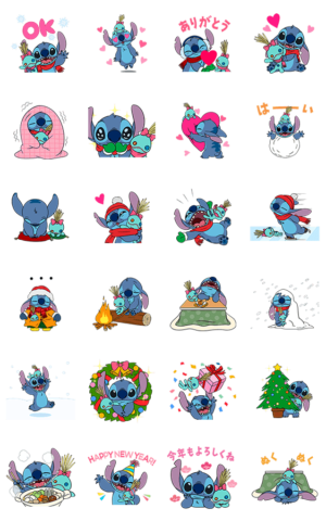 寒い冬もほっこり乗り越えられるような温かなスティッチのスタンプで、友達や恋人にと使えそうです!