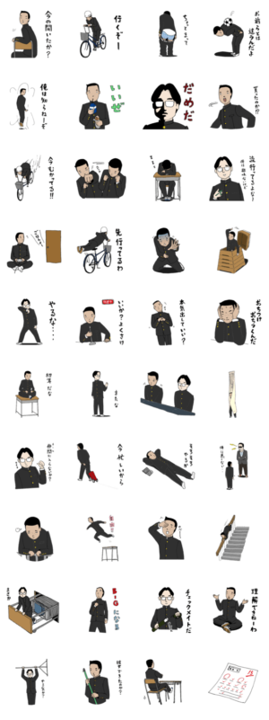 これぞ中学生パワー。キャラクターは中学生ですが、大人から子供まで日常会話で使えるスタンプセット。青臭くて最高にかっこいい年頃の男子を会話に織り交ぜて下さい。サドルとペダル より発売