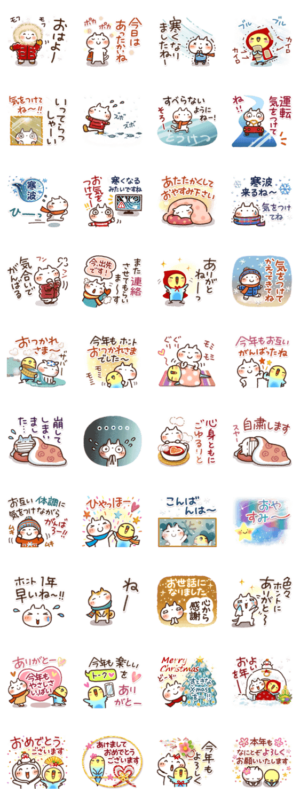 やさしいスタンプシリーズ!寒い冬、温かい冬、冬の日常、クリスマス、年末年始、お正月!冬に便利なスタンプがいっぱい ♪