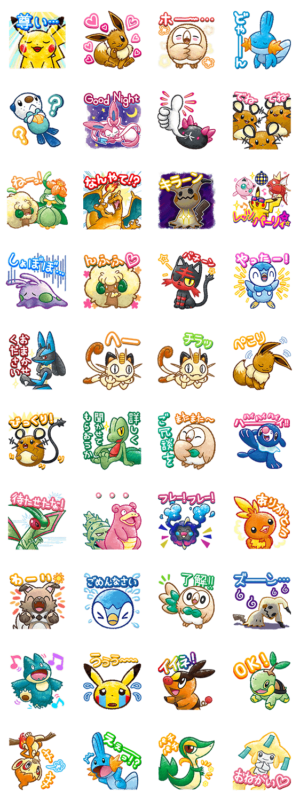 あの人気ポケモンたちが、いよいよスタンプに仲間入り!ふんわり可愛いタッチの、使いやすいスタンプだよ。お気に入りのポケモンでトークを賑わせよう!