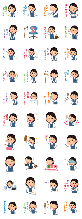 働くOLさんスタンプです☆ビジネスマナーの挨拶をしてくれるスタンプ。