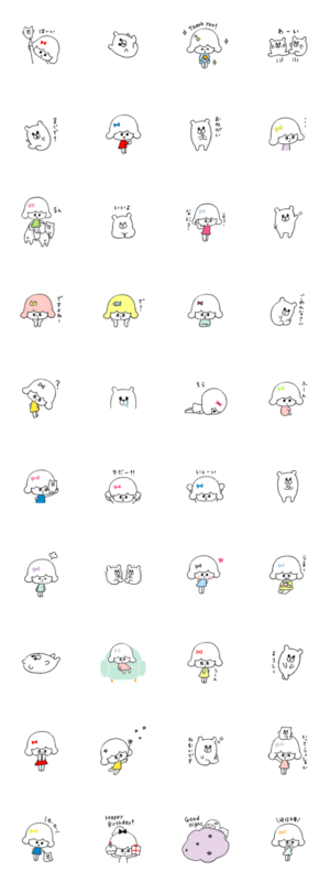 イラストレーターYumikaの、るーしーと小さいくまたちのスタンプです。Yumika より発売