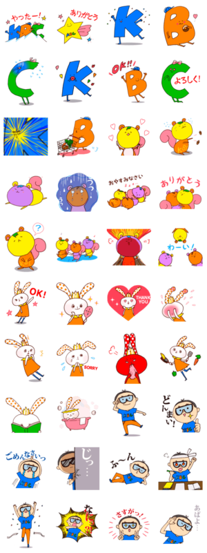 キッズベースキャンプに通う小学生の子どもたちが考案したキャラクターたちがスタンプになって登場!キッズベースキャンプ より発売