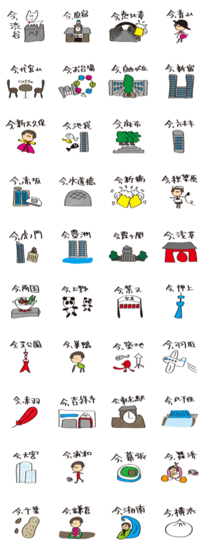 渋谷、原宿、銀座、代官山、お台場、恵比寿…東京都内は楽しい所がいっぱいです。「今ここにいるよー」をスタンプで。おまけは、千葉県、埼玉県、神奈川県。キキぷり より発売