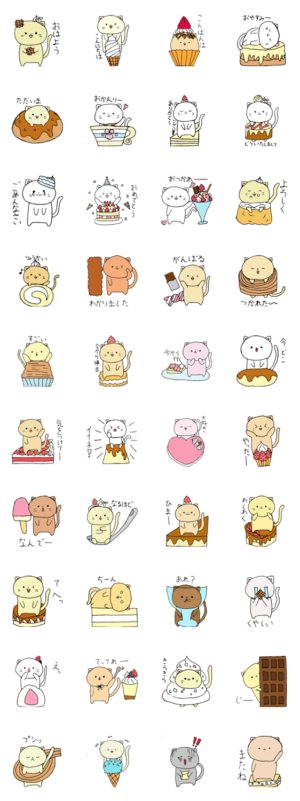 これは気ままな可愛い猫とスイーツが合わさったスタンプです。RIA より発売