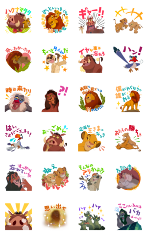 ライオンキングのしゃべるスタンプです。にぎやかなスタンプをラインに飾ってトークを盛り上げましょう!