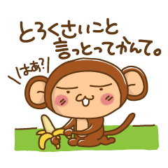 名古屋弁バリバリのおサルが今日もケッタでひた走る。名古屋人もそうじゃにゃあ人もぜひこのスタンプで盛り上がったってちょー。satoco より発売