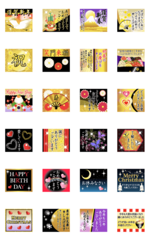 新年の輝かしい挨拶ができるスタンプです。クリスマスもカバーできて良いですね。