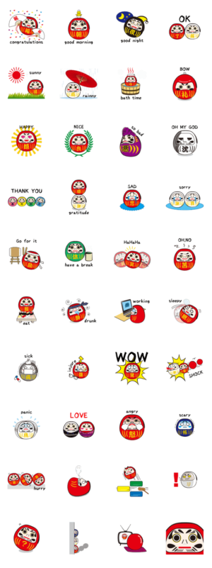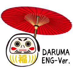 コロンとしたフォルムが可愛い日本の縁起物だるまさんスタンプ英語版。おなかの漢字で気持ちを伝えます