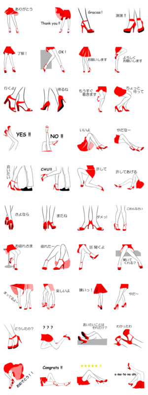 大人の女性のためのスタイリッシュでセクシーなスタンプです。魅惑の美脚で男性のハートをわしづかみ。Congrats omotenashiHAL MIZ より発売