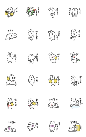 シュールでゆるすぎるミニうさぎの【お酒】スタンプです!eribo より発売