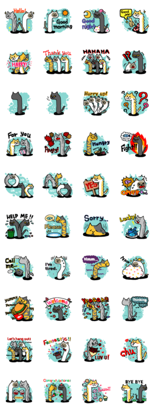 海外在住のかわいい「ちんあなごねこ」たちの英語版スタンプですmana より発売