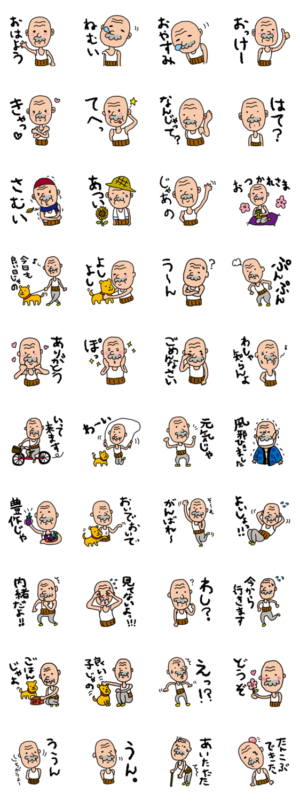 おじいちゃんの仕草が可愛くてたまらないのでスタンプにしました。よしお より発売