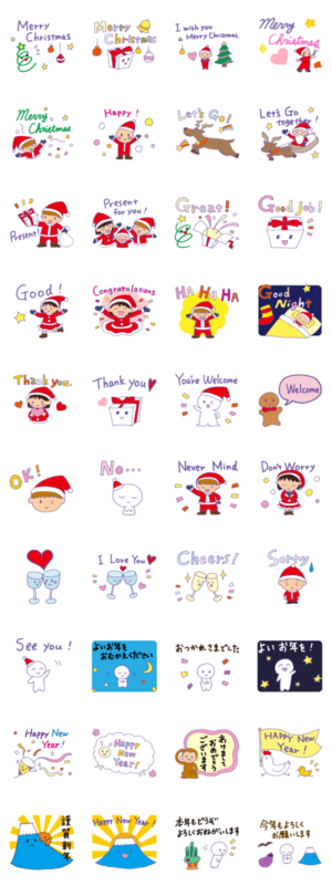 クリスマスや新年のご挨拶に使えます。クリスマスカードやグリーティングカード、年賀状の代わりにスタンプを送ってみませんか?上司や先輩宛用に丁寧な言葉入り!mihha より発売
