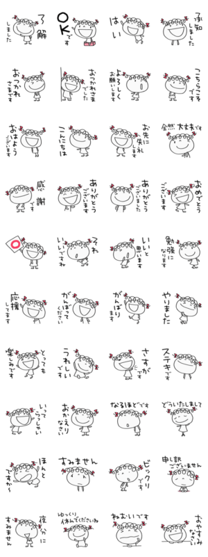 いろんなバリュエーションがあり、可愛くて使いやすいスタンプです。優しさがにじみ出ていますね。