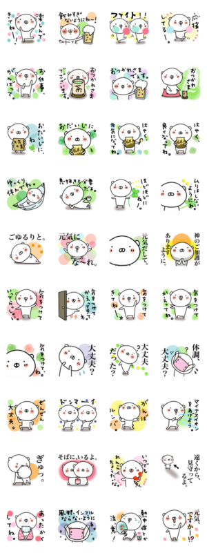 「お大事に」「気をつけて」「がんばって」など色んなバージョンでの大切な人たちへ向けていたわり、応援スタンプです。