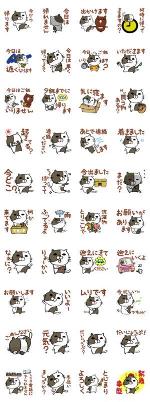 家族やカップル向けの業務連絡スタンプです。「迎えに来て」「了解」等、毎日同じ文面を入力する手間が省けます。文字入力が苦手な方もこれなら大丈夫かも?!はやま より発売