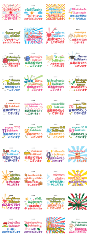 タイ語・日本語 おめでとう 女性「カー」 スタンプ画像一覧