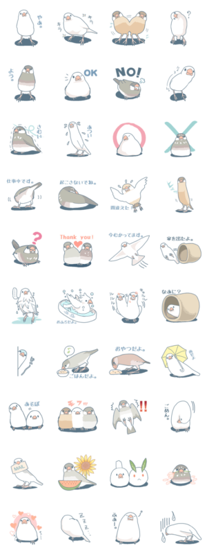 文鳥さんのちいさなスタンプです。BUNCHO BOX より発売