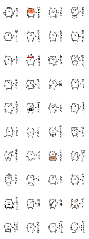 無表情のくまのキャラクターなので、日常のなんでもない所で使えます。テンションが高すぎないのがゆるくて使い勝手が良いですね。