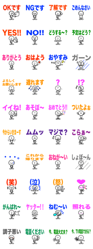 大人が使いたい超シンプルなスタンプ。文を打たなくてもこれだけでだいたいOK。あんじープロジェクト より発売