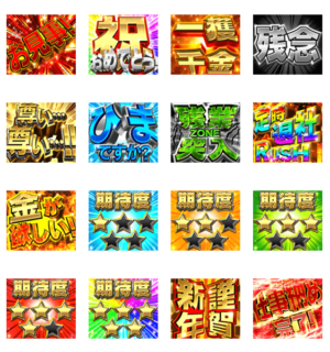 派手なギラギラした感じのタイトルのスタンプ第二弾です。 パチンコ屋のチラシ風のスタンプにしてみました!