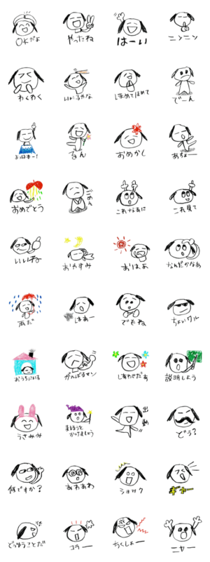 クレヨンで書いた犬(いぬ)のわん子。おはようからおやすみまで。ゆるっと使ってね。キキぷり より発売
