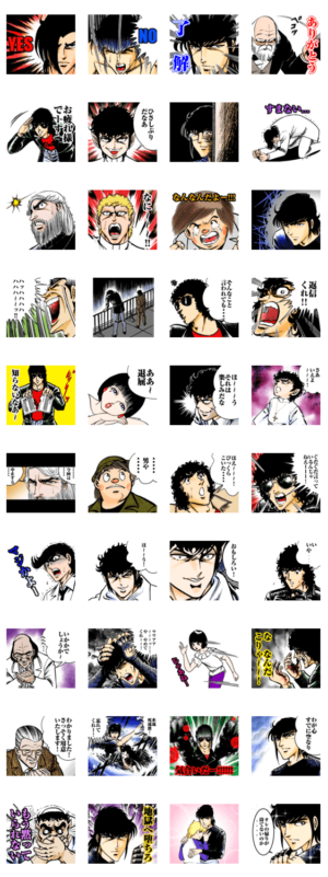 ブラック・エンジェルズがLINEスタンプに登場!雪藤、松田、水鵬、勇気等お馴染みのキャラクターが登場!伝説の名シーンと名セリフを使いこなせ!!Makoto Ogino/Kujakudou/リンクスジャパン株式会社 より発売