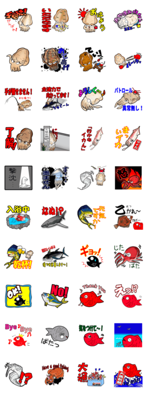ちょっとゆる~い感じのお魚スタンプ。釣り人同士、日常会話でもお楽しみくださいmarinkoubou より発売