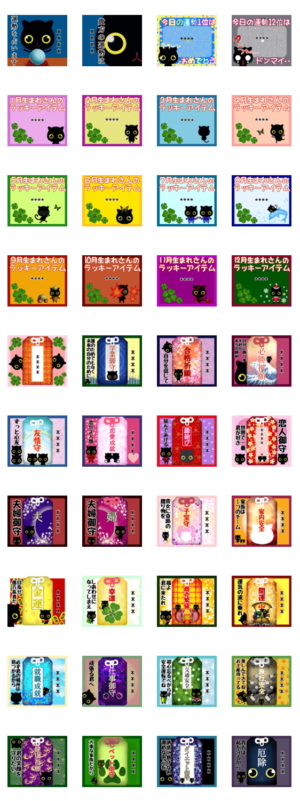 黒猫ちい占いの幸せを呼ぶ御守り スタンプ画像一覧