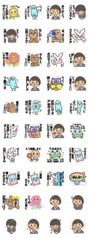 保険屋さん、ショップさんなど様々な営業活動で使える真心スタンプ女性版。よく使う文句を丁寧語・敬語で用意。文字打無しでもお客様や目上の方との連絡にサッと使えます。
