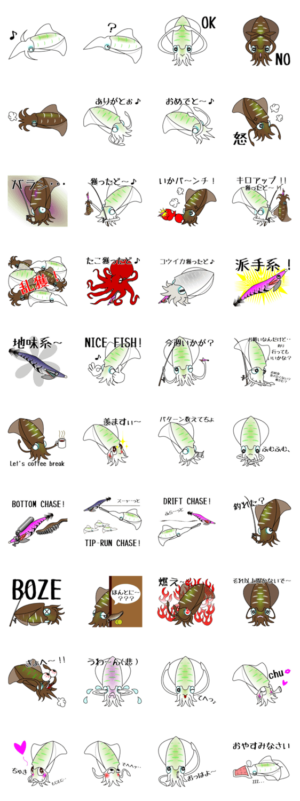 アオリイカのブッシュくんスタンプです。エギングやルアー釣り会話にお役立て下さい。