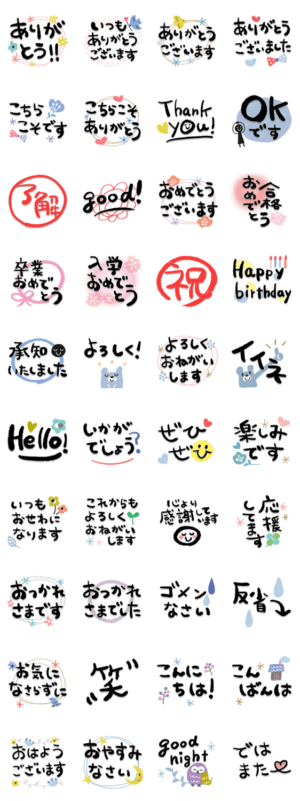 筆文字風の気持ち伝わるスタンプです。日常で使う言葉も入って毎日使えます。敬語/大人/筆文字/シンプル/お祝い/ありがとう/お礼/挨拶