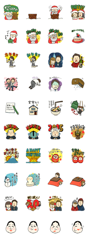 日本の年末年始の詰め合わせスタンプ、ポンッと気軽に使えていいです♪
