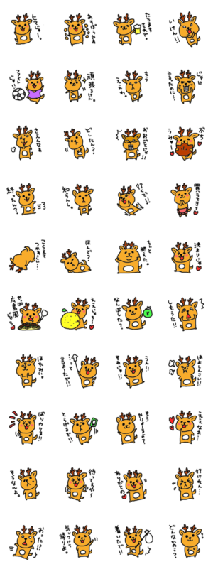 広島弁のシカ太郎スタンプ第2弾ができました!トナカイじゃないけぇね(笑)たくさん使って下さい!ひなパン より発売