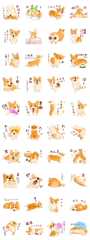 かわいい犬のコーギーのスタンプです。敬語で、日常で使いやすい言葉を詰め合わせました。男女問わず使えます。 日常会話/コギケツ/
