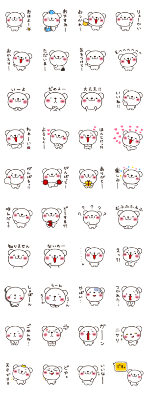 しろくま作品第三弾!日常でよく使う言葉をスタンプにしました。シンプルだからこそながーく使える!しろくまのきほんセットです。【作:いしいともこ】