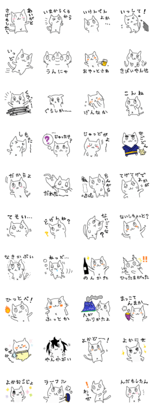 かごんま弁のてげてげネコじゃっど。てげてげに使いやんせ。あいがとさげもした!(鹿児島弁のてげてげネコです。適当に使ってください。ありがとうございました!)emew より発売