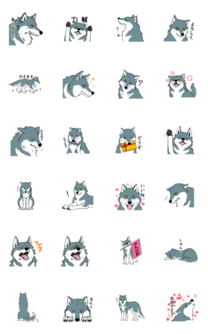かっこいい、かわいいおおかみのスタンプです。日常使いがしやすいようにつくりました。会話の癒しにどうぞ。