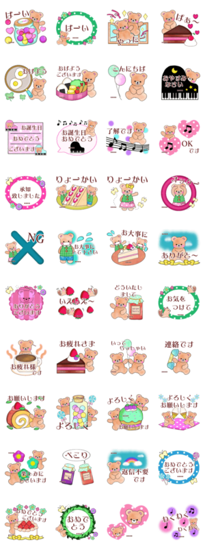 大人敬語/丁寧語/くま/りす/ケーキ/いちご/ほんわか日常会話かわいいお花畑スタンプ/承認致しました/了解です/ありがとう/お願いします/お大事にして下さい/おしゃれ