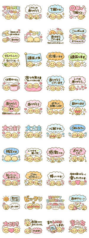 大人可愛い♡お月さまのカラフルなパステルカラーのスタンプです。日常会話でも使いやすい「気持ちを伝える言葉」を厳選しました♪