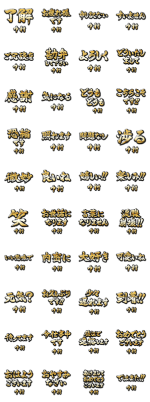 【中村】金の了解(筆文字) スタンプ画像一覧