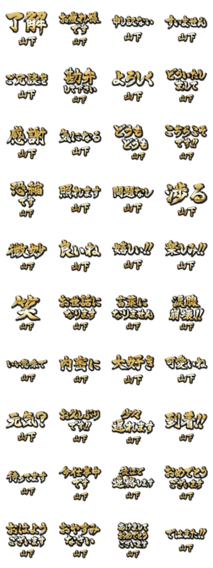 【山下】専用。黄金の筆文字スタンプ。キャラなし、デカ文字。お値段そのままで超豪華、超ゴージャス。贈答用に最適。