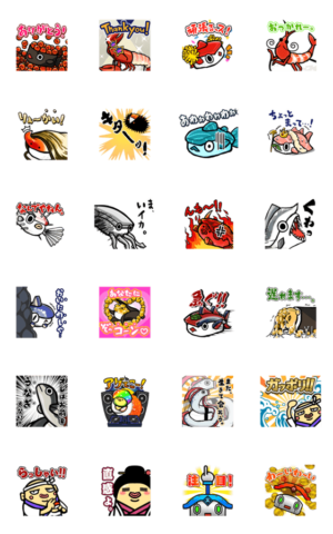 人気メダルゲーム「ギョ~転!ガッポリすし」がスタンプに登場! 寿司ネタ達のイカす、スタンプ!ぜひイカが? がっぽり/ギャグ/アニメーション/動く