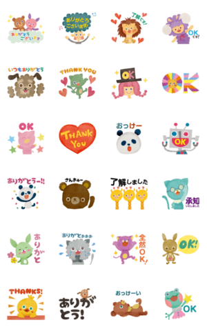 日常でよく使用する【ありがとう】と【OK(了解)】のスタンプをたくさん詰め込んだスタンプです。 可愛く楽しくかんたんに!気持ちを伝えてみましょう!