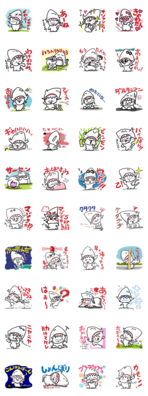 ネコがサメの着ぐるみを着てるオリジナルキャラクター[にゃんチョ☆]スタンプです。Yuki.A@kiridango より発売