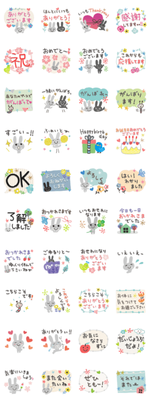 お祝いや新生活の季節に使いやすい気持ち伝わるスタンプです。ひらりーー の大人カワイイ。スタンプVer.20うさぎ/お祝い/鳥/日常/誕生日/敬語/大人/新生活